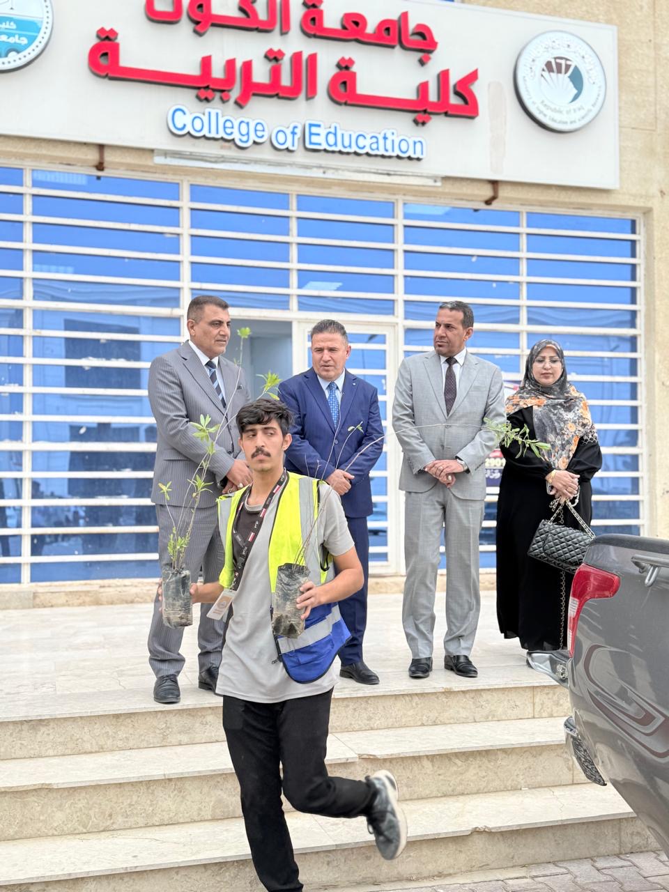 أشرف السيد عميد كلية التربية الأستاذ المساعد الدكتور مثنى حميد اللامي على حملة التشجير التي تبنتها الجامعة، والهادفة إلى توسيع المساحات الخضراء في جميع أروقة الكليات وما يحيط بها، بما يسهم في إيجاد بيئة جامعية متكاملة تجمع بين الجمال الطبيعي والفائدة الصحية.