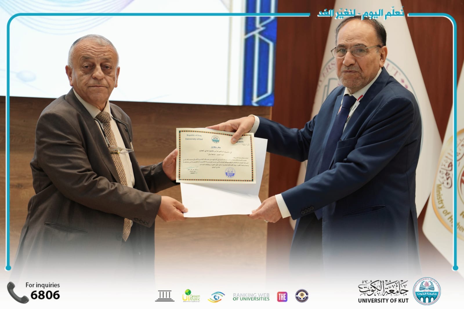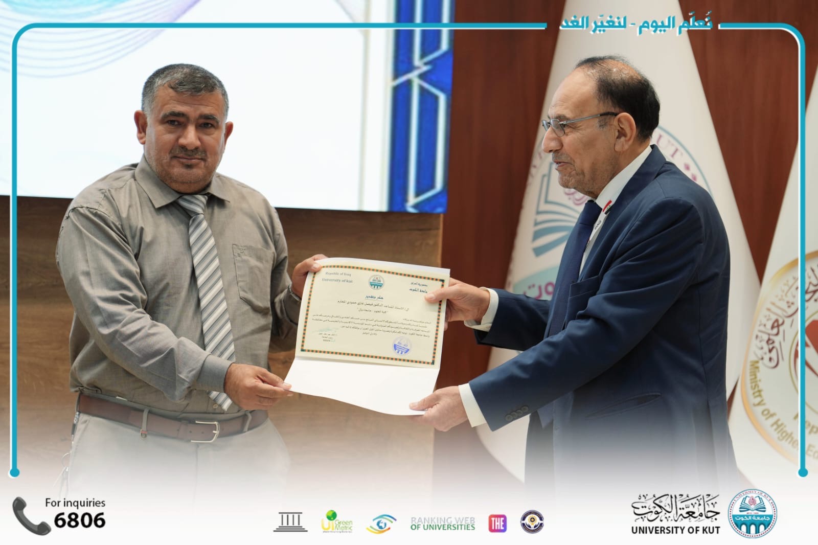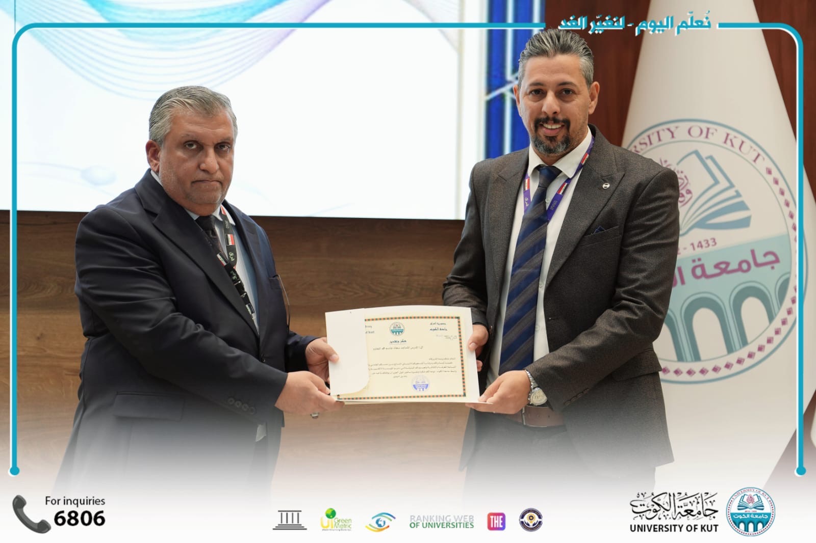 وتواصل جامعة الكوت تنظيم الفعاليات العلمية النوعية التي تسهم في ترسيخ مكانتها الأكاديمية، وتعزيز التعاون مع الجامعات العراقية ومؤسسات الدولة، خدمةً للعلم والمجتمع والتنمية المستدامة.