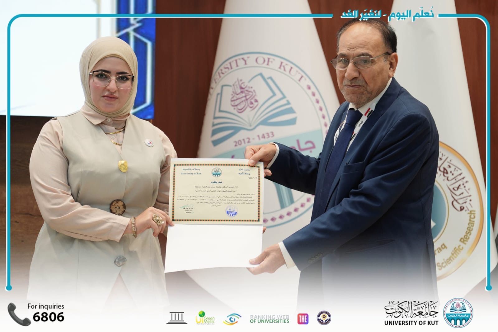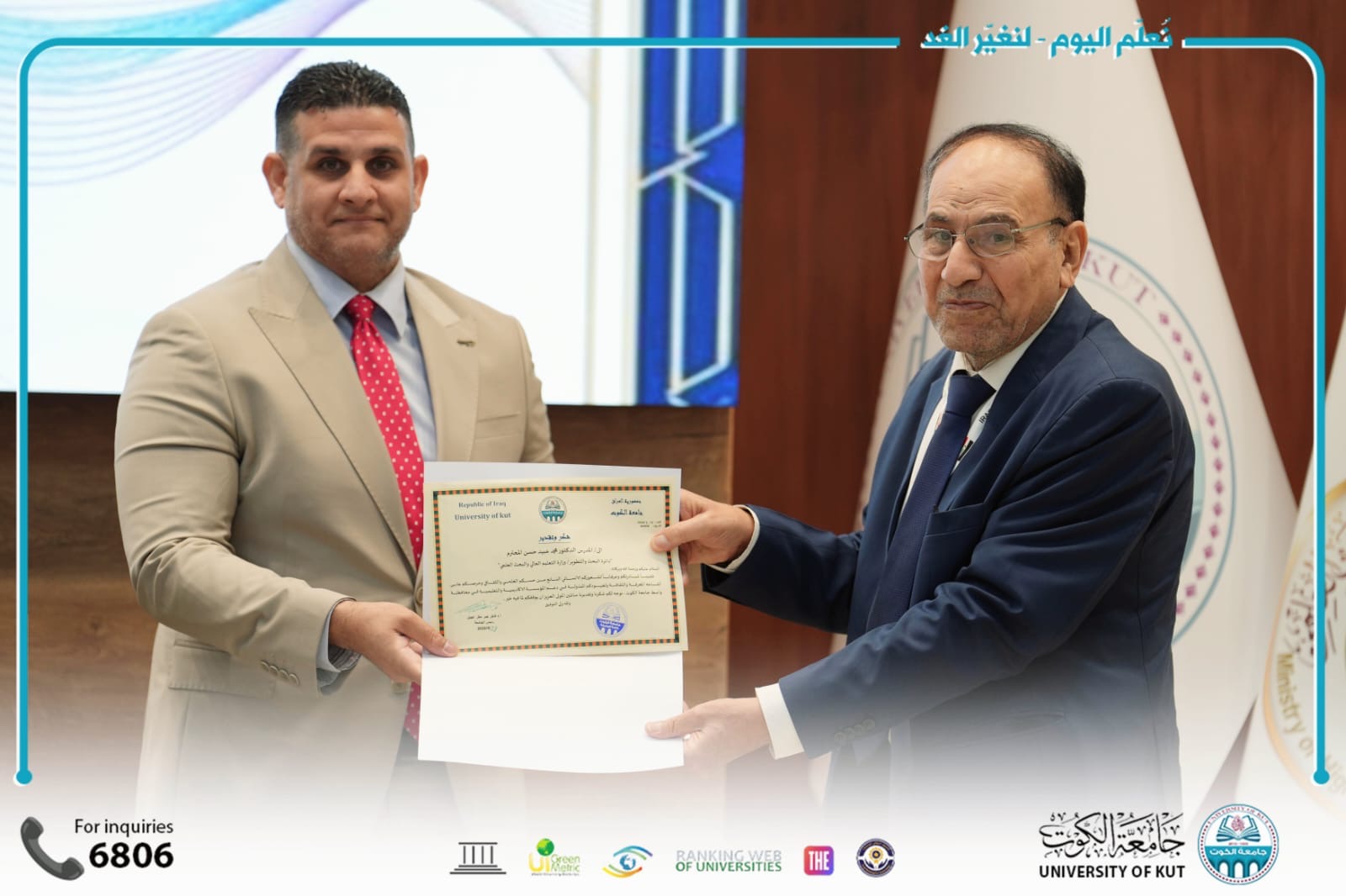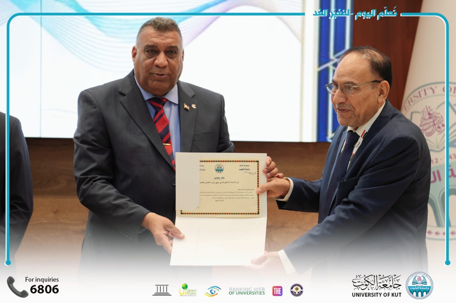 وتواصل جامعة الكوت تنظيم الفعاليات العلمية النوعية التي تسهم في ترسيخ مكانتها الأكاديمية، وتعزيز التعاون مع الجامعات العراقية ومؤسسات الدولة، خدمةً للعلم والمجتمع والتنمية المستدامة.