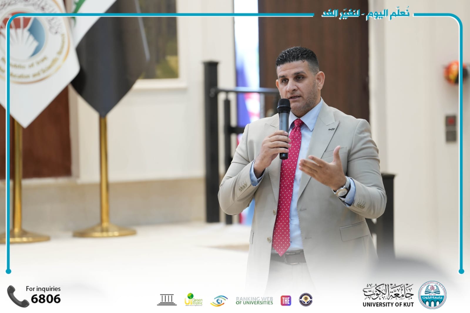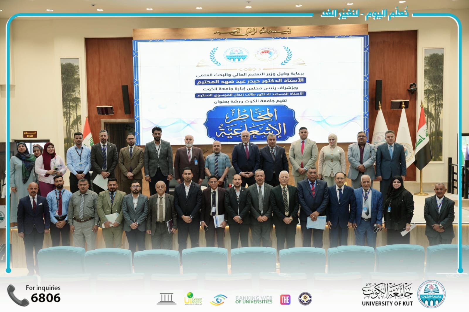 برعاية السيد وكيل وزير التعليم العالي والبحث العلمي الأستاذ الدكتور حيدر عبد ضهد المحترم، وبإشراف السيد رئيس مجلس إدارة جامعة الكوت الأستاذ المساعد الدكتور طالب زيدان الموسوي المحترم، أقامت جامعة الكوت ورشة علمية أكاديمية متقدمة بعنوان (المخاطر الإشعاعية والنووية بين الواقع والتحديات المعاصرة)، وذلك يوم الثلاثاء الموافق ٢٠٢٦/٤/٢٨م على قاعة الدكتور طالب زيدان الموسوي الكبرى للمؤتمرات، وبحضور رسمي وأكاديمي واسع ضم ممثلين عن الوزارات والمؤسسات الحكومية وعدد من الجامعات العراقية.
